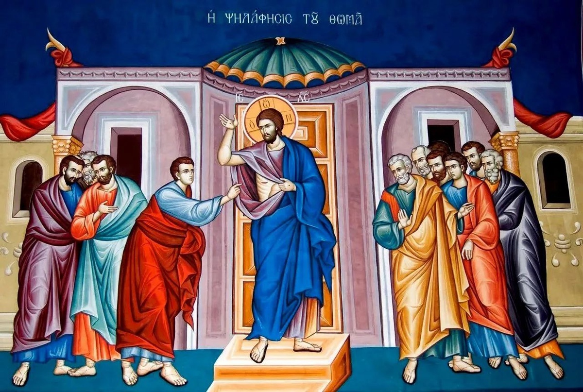 🌹🌹 В тот же первый день недели вечером, когда двери дома, где собирались ученики Его, были заперты из опасения от Иудеев, пришел Иисус, и стал посреди, и говорит им: мир вам! Сказав это, Он показал им руки и ноги и ребра Свои. Ученики обрадовались, увидев Господа. Иисус же сказал им вторично: мир вам! как послал Меня Отец, так и Я посылаю вас. Сказав это, дунул, и говорит им: примите Духа Святаго. Кому простите грехи, тому простятся; на ком оставите, на том останутся. Фома же, один из двенадцати, называемый Близнец, не был тут с ними, когда приходил Иисус. Другие ученики сказали ему: мы видели Господа. Но он сказал им: если не увижу на руках Его ран от гвоздей, и не вложу перста моего в раны от гвоздей, и не вложу руки моей в ребра Его, не поверю. После восьми дней опять были в доме ученики Его, и Фома с ними. Пришел Иисус, когда двери были заперты, стал посреди них и сказал: мир вам! Потом говорит Фоме: подай перст твой сюда и посмотри руки Мои; подай руку твою и вложи в ре