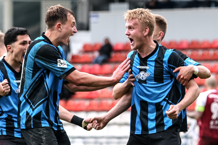 Черно-синие в матче 4-го тура Второй лиги «Б» выиграли невероятно эмоциональный матч. «Сатурн» «Салют-Белгород» – 2:1 (0:0) Голы: Ивантеев, 50 (0:1). Генчу, 71 (1:1). Пономарёв, 82 – в свои ворота (2:1). «Сатурн»: Матвеенков, Пивоваров, Чупин, Мацола, Цечоев, Седов (к), Тетёркин (Генчу, 46), Вильгельм (Чернышев, 90+), Богданец, Муллин (Бирюков, 88), Бескоровайный (Фетисов, 80). Виктор Навоченко, который когда -то играл за «Сатурн» в РПЛ, а последние пять лет тренирует белгородскую команду, на эмоциях назвал игру его подопечных во втором тайме позорной. Однако по факту нужно не ругать соперника, а хвалить черно-синих, которые, подобно барону Мюнхгаузену, сами себя вытянули из болота. Утонуть в нем было проще простого, ведь в первом тайме крайне напряженной игры чуть острее были гости, а занявший место в воротах жуковчанин Матвеенков спас после удара в упор. Он отлично прочитал ситуацию и, быстро переместившись, успел выброситься навстречу сопернику. А на стыке таймов все, казалось, вали