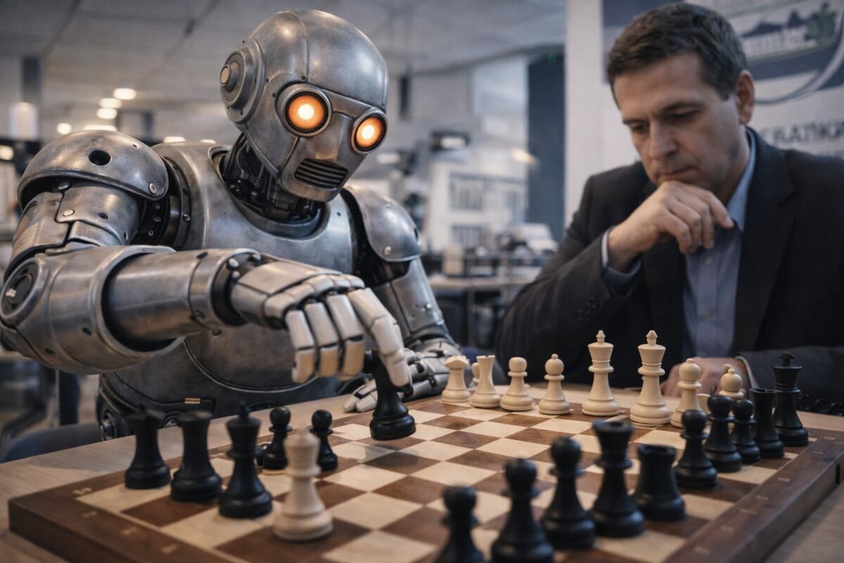 В Кабардино-Балкарском государственном университете в Нальчике разработали робота, который играет в шахматы на уровне международного гроссмейстера. Проект создала команда лаборатории интеллектуальных систем и анализа данных. В основе — роботизированная рука, 3D-камера и алгоритмы искусственного интеллекта. Система распознаёт фигуры на доске, отслеживает ходы соперника и просчитывает десятки вариантов развития партии. На анализ позиции у машины уходит от 0,1 до 2 секунд, а на сам ход — от 4 до 10 секунд из-за механики. Робот не просто считает варианты, но и учитывает позиционные решения, характерные для сильных шахматистов. Разработку уже показали на университетской выставке — там проект получил диплом первой степени. При этом робот используется не только как демонстрация технологий. Студенты работают с ним в учебных задачах: учатся программировать, собирать робототехнику и интегрировать её с системами компьютерного зрения. В университете планируют развивать проект дальше. К лету 2026 г