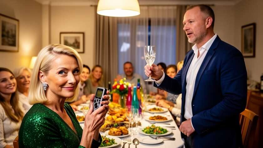 Диктофон работал. Красная точка на экране пульсировала под скатертью, как маленькое чужое сердце.