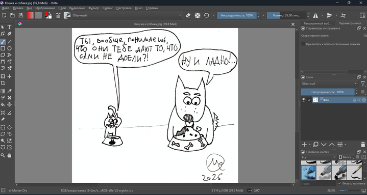Рисовать на компьютере я начинал в Adobe Photoshop (моя аватарка нарисована как раз в нём в далёком 2010 году). Это, конечно, комбайн, может многое и моё рисование для него узкоспециально. С появлением в моей жизни Linux, пришлось поглядеть на другие продукты. Нашёл MyPaint, в нём часто рисуют, но этот проект плохо развивается. На сегодняшний день последняя версия вышла в 2020 году. И вот в моей жизни появилась Krita. В ней я нарисовал книгу "Чудесные лучи" и стикеры для Телеги "Русские учёные и изобретатели" и "Scientists".