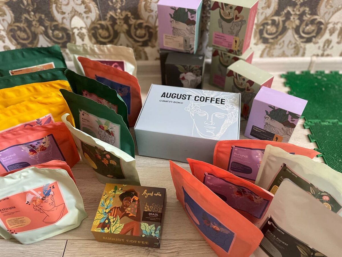 На этой раз мы закупались у August — обжарщик из Санкт-Петербурга. Красивые у них наклейки на пачках. Да и кофе, сколько раз я пробовала, всегда был хорошим. К сожалению, у ребят нет бесплатной доставки, ни от какой суммы. Учитывайте это, если будете заказывать сами. Упаковано все было отлично, но в заказе не хватало одной пачки зерен, а одна упаковка дрипов была перепутана. Эти нюансы обычно решаю сама.