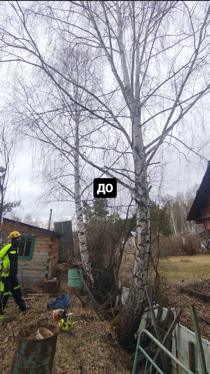 Пилим по частям две берёзы в Екатеринбурге, в одном из СНТ на Палкинском Торфяннике.