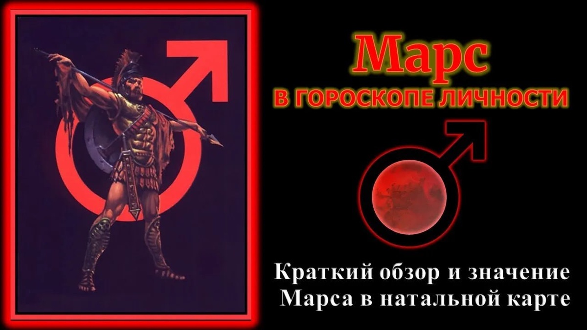 Вот небольшое видео про значение этой планеты в вашем личном гороскопе. Смотреть на You tube Смотреть на RUTUBE Если вкратце, то Марс в гороскопе указывает на...: - Как человек действует в реальности (физические поступки); - Энергия и где она выражается; - Что возбуждает человека, его сексуальность и активность; - О целеустремленности и способности напрягаться; - Агрессивность и злость, что является триггером для агрессии и в какой форме человеку свойственно конфликтовать; - О сфере, где действия личности могут быть наиболее эффективными; - Как человек добивается своих целей (пара примеров, Марс в Близнецах - использует связи и друзей или Марс в Рыбах - человек может через манипуляции и роль слабого заставлять других выполнять нужные ему действия, в реализованном положении - через творчество и воздействие на духовный план); - Те шаги, которые человек будет предпринимать рефлекторно в любой ситуации, то есть триггерный рефлекс на конфликты и напряжения; - Как себя человек пр