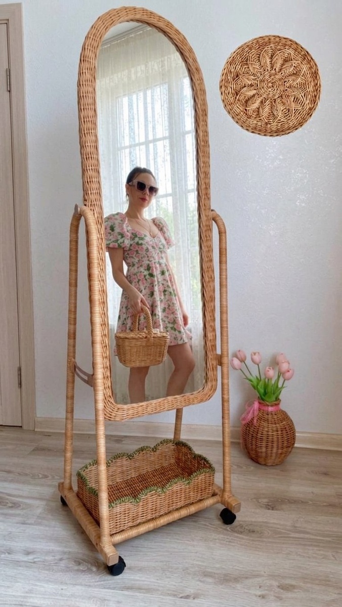 Плетёное зеркало на колесиках — это не только практичный предмет интерьера, но и декоративный акцент, который создаёт атмосферу уюта и природной лёгкости в комнате. Такое зеркало сочетает в себе функциональность и мобильность, а натуральная плетёная оправа добавляет тепла и текстуры в любой стиль — от бохо и кантри до скандинавского и прибрежного.