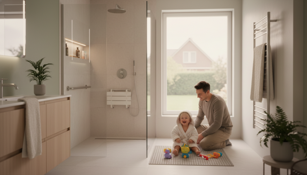 Большинство ванных комнат проектируют по старому сценарию: высокий поддон или порог, открытые смесители, гладкая плитка, экономия на гидроизоляции и сливе. Для взрослых это ещё терпимо. Для малышей такой санузел — источник постоянного стресса для родителей.