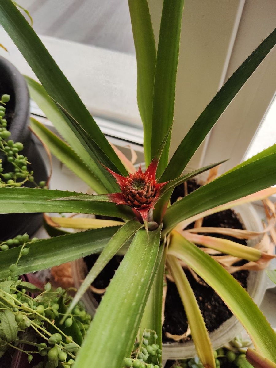 Всем добрый день! Не могу не похвастаться... Представляете у нас зацвёл ананас, посаженный из макушки привезённого друзьями с Тайланда ананасика