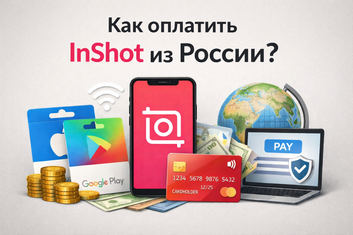 К 2026 году появились более простые решения. Сегодня подписку InShot можно оплатить дистанционно, используя подарочные карты, виртуальные карты или специальные сервисы оплаты.