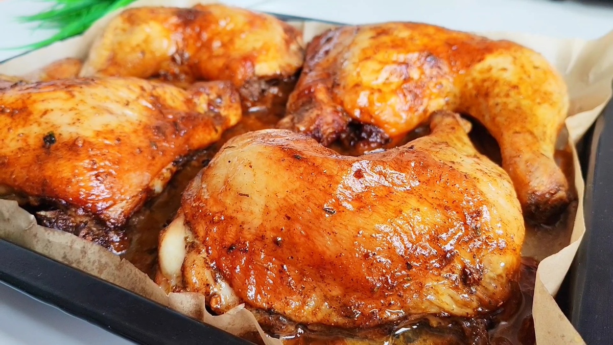 Эта курица хорошая как в горячем виде, так и на следующий день. Даже грудка по этому рецепту получается очень сочная и не сухая.
