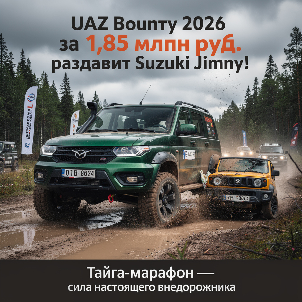 🌪️ UAZ Bounty 2026 за 1,85 млн руб. раздавит Suzuki Jimny! Тайга-марафон! 🐻