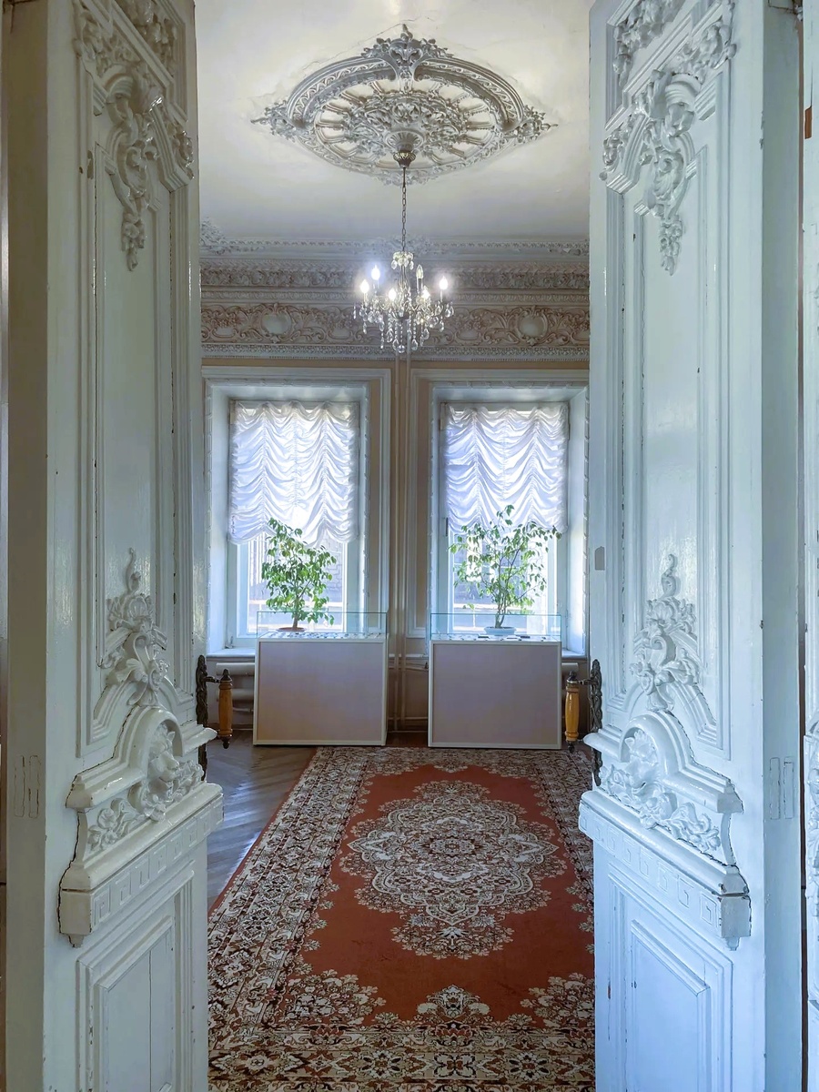 Внутри – чудес еще больше! Паркетные полы, стены, украшенные лепниной, изысканная резьба по дереву, изразцовые печи... Можно часами бродить по залам, изучая каждый уголок и каждую деталь. И даже без экспонатов, сама атмосфера усадьбы уже погружает в историю...