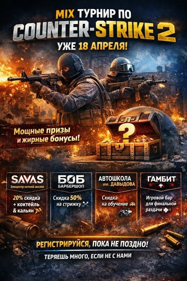 : 18 апреля 2026 года состоялся отборочный MIX-турнир по дисциплине Counter-Strike 2. Целью соревнования было определение игроков, которые получат право выступать за город Орехово-Зуево в межгородских матчах. Площадкой проведения выступил компьютерный клуб «Атмосфера». Участие приняли 30 конкурсантов, среди которых были члены нашего клуба. По итогам турнира все участники VOSTOK GGTU отмечены ценными призами от официальных партнёров. Результаты наших игроков: 🔥 Мележик Максим (ЛДПК ГГТУ) 🔥 Дурандин Александр (ЛДПК ГГТУ) 🔥 Спирин Кирилл (ПЭК ГГТУ) 🔥 Веселкин Илья (ПЭК ГГТУ ) Топ-2 из 30 участников: 🥇 1 место — Рогожин Роман (ПЭК ГГТУ) 🥈 2 место — Тимофеев Роман (ПЭК ГГТУ) Поздравляем команду с успешным выступлением и благодарим организаторов за призы! Впереди — основные соревнования. Держим курс на победу. #VOSTOKGGTU #ДеньКосмонавтики #AR #СтуденческийКиберспорт #КиберспортОреховоЗуево #ГГТУ #КиберспортПодмосковье #МыЗаКиберспорт #ОреховоЗуево #Атмосфера
