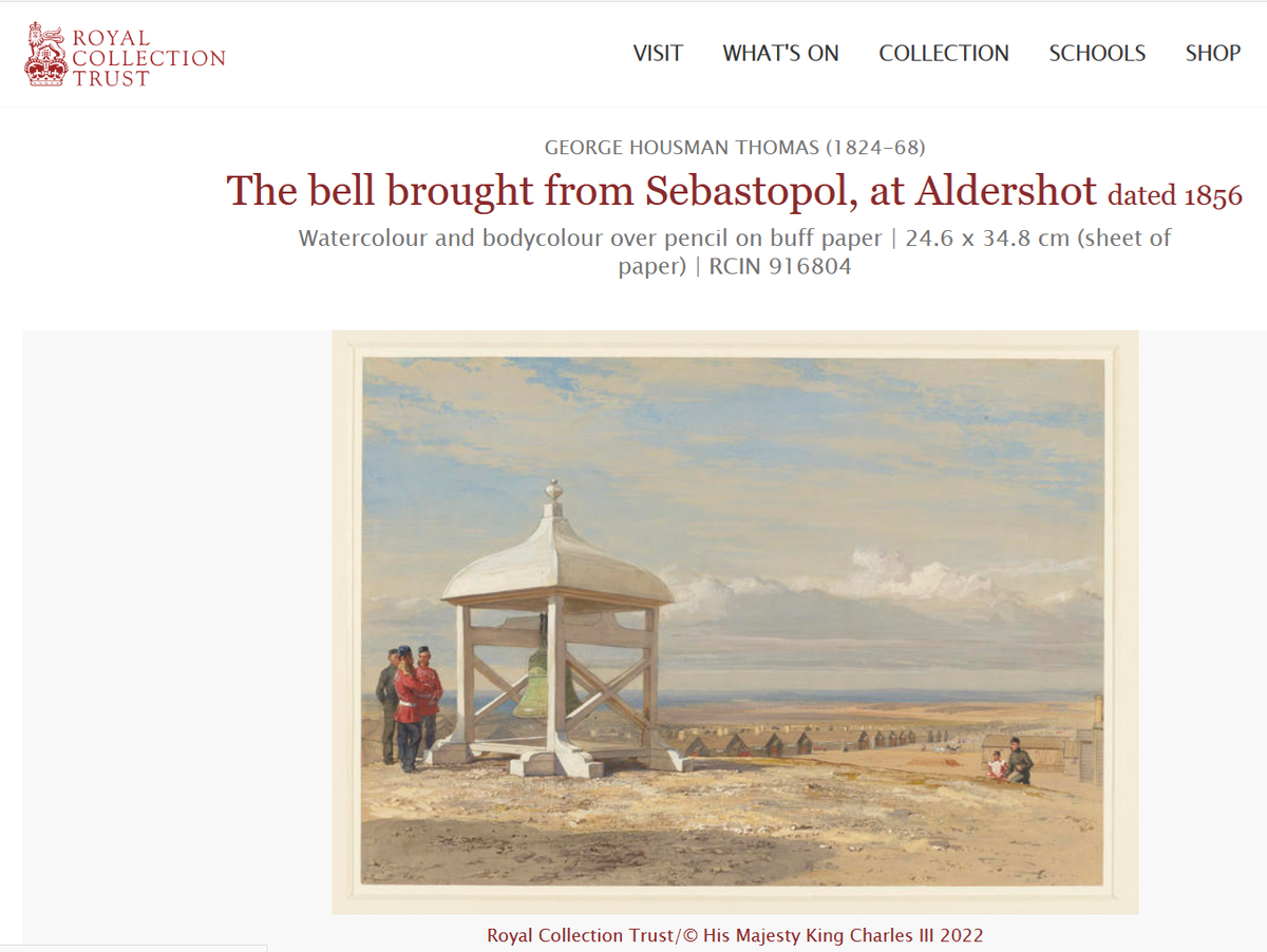 Вот опять мне обидно стало. До сих пор не понимаю - что британцы с их руками шаловливыми делали в российском Крыму, почему считают, что они там победили, еще и находят акварель с изображением колокола, спертого из церкви Двенадцати Апостолов в Севастополе - "документирующей совместную жизнь королевы и принца"? Каким местом она документирует? (здесь - простор для комментариев)