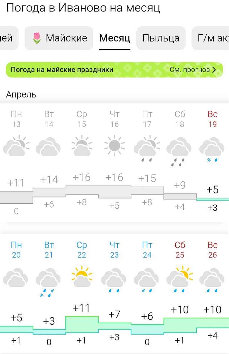 17 апреля, в пятницу, когда об этом думала, прогноз на следующую неделю был даже лучше.