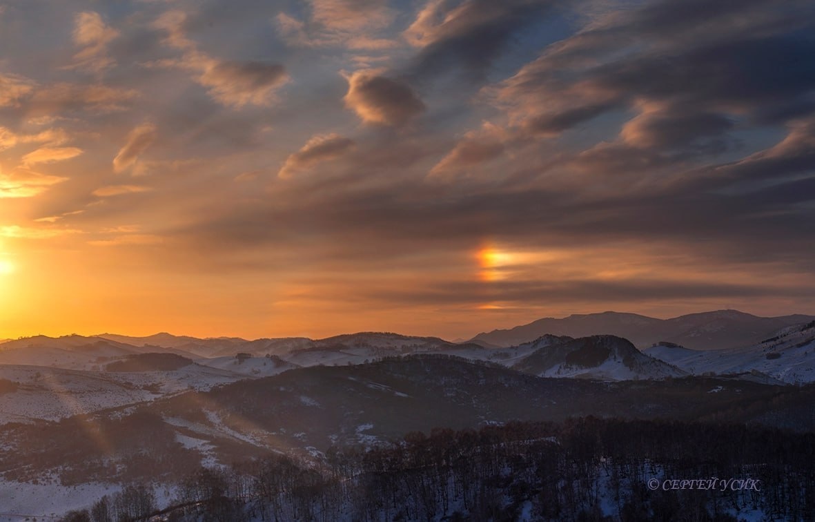 ? Периодически жители Алтайского края замечают необычное свечение вокруг Солнца – солнечное гало. Само слово пришло из древнегреческого и означает «круг» или «диск» Гало – это атмосферное оптическое явление, возникающее из-за преломления и отражения солнечного света в кристаллах льда. Такие кристаллы содержатся в верхних слоях атмосферы, чаще всего в перистых облаках. Главное условие появления гало – наличие льда в воздухе Наблюдать его чаще удается зимой, но при подходящих условиях гало может появляться и летом, например перед приходом теплого атмосферного фронта, когда атмосфера прозрачна и спокойна Интересно, что гало бывает не только солнечным – его можно увидеть и вокруг Луны, причем в самых разных формах. Специалисты напоминают: наблюдать явление лучше в темных очках или через специальное стекло, чтобы не повредить зрение На фото: гало над Орешной в Солонешенском районе 📷 Сергей Усик 🗺 Место на карте ❤️ Подписывайтесь на «Через край» 👣 Мы в MAX
