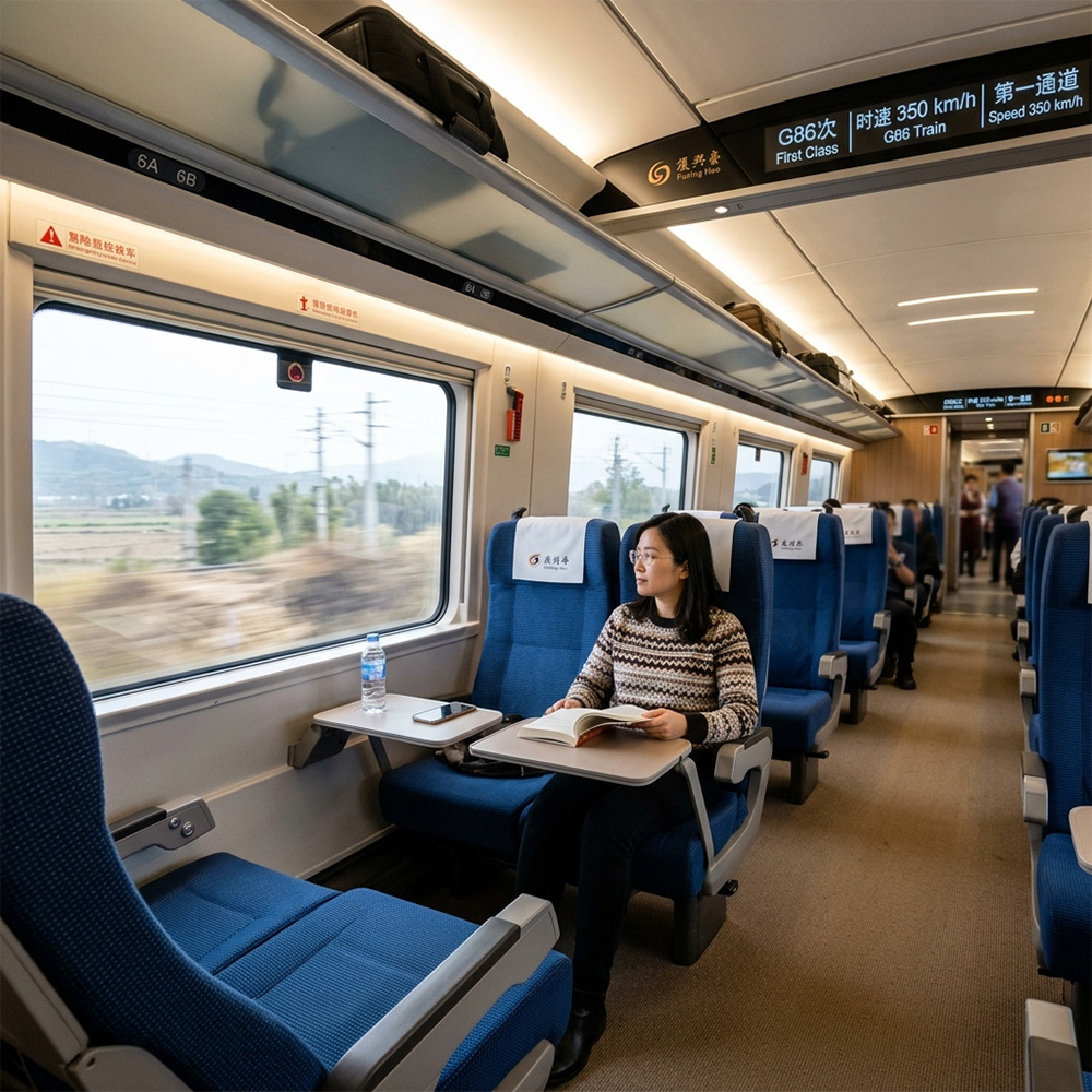 Оптимальным и самым быстрым способом перемещения между городами является сеть высокоскоростных железных дорог. Поезда курсируют со скоростью 300–350 км/ч, отправляясь строго по расписанию. Покупка билетов осуществляется через официальное приложение 12306. Иностранцы могут зарегистрироваться в приложении по заграничному паспорту, однако процесс верификации документов может занять от 3 до 5 дней. Иногда система требует дополнительной офлайн-проверки: в этом случае для завершения идентификации необходимо с паспортом подойти в любую кассу на железнодорожном вокзале. В качестве более простой альтернативы с небольшой комиссией туристы часто используют международный сервис Trip.com, который передает данные напрямую в систему железных дорог. А самое приятное — посадка осуществляется без бумажных билетов: пассажир прикладывает страницу заграничного паспорта к сканеру на турникете.