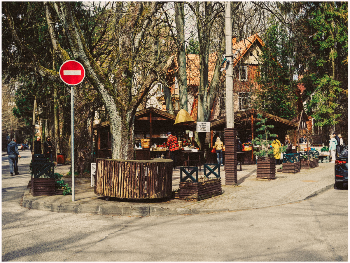 Каждое воскресенье мы с друзьями ходим в баню ездим на рынок Шакотис в Светлогорск. Это стало уже какой-то доброй традицией: прикупить настоящего мяса (правда сегодня Ирина свинтила на свадьбу и остались только с курицей), настоящего вкусного хлеба, может быть даже наливочек и других вкусностей. В арт-пространстве "Телеграф" проходит "отчетная" выставка работ участников студии "Лоскуты". Студия зародилась у нас на глазах из одного перформанса, а теперь уже стала постоянным атрибутом пространства. Если бы постоянно жил тут – однозначно бы участвовал, но пока приезжаю только как гость. Сегодня в программе "творческого клуба" была лекция. Я же отправился рассматривать картины и вот такие этнические инсталляции Виктории Стожко. Еще в прошлый раз обратил внимание, что она начала превращать серые блоки во что-то яркое, а теперь увидел, во что и для чего. С картинами тоже разнообразно: здесь и абстракции, и нео-авангардизм, и даже намек на этнические мотивы лоскутного шитья. Не даром студия н