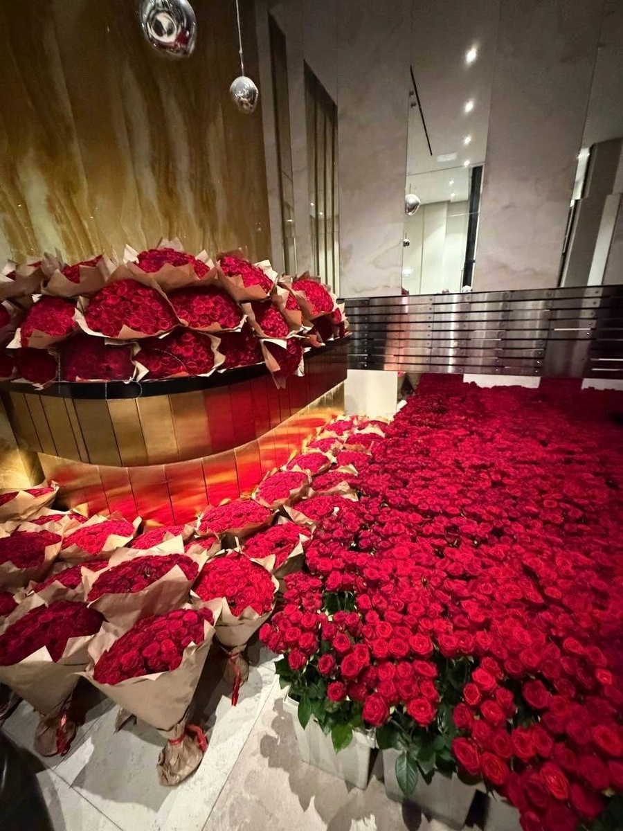 Жители одного из элитных жилых комплексов в Раменках этим утром почувствовали себя героями старой песни про бедного художника, вот только художник здесь явно не бедный. Весь первый этаж, лифтовые холлы и проходы оказались буквально заблокированы бескрайним морем красных роз. Доставщики, судя по всему, работали в режиме стахановцев всю ночь, разгружая тысячи букетов, чтобы к моменту пробуждения «той самой» подъезд превратился в декорации к голливудской мелодраме. Пока одни соседи пытаются пробраться к лифту сквозь колючие заросли, другие подсчитывают, во сколько обошелся этот цветочный жест. По предварительным оценкам, стоимость этого признания в любви колеблется в районе 70 миллионов рублей. Это тот случай, когда букет стоит дороже, чем некоторые квартиры в том же районе, и уж точно дороже большинства автомобилей, припаркованных во дворе. На фото видно, что цветы стоят везде: в ведрах, специальных контейнерах и просто аккуратными рядами вдоль стен, создавая настоящий коридор из алых бу