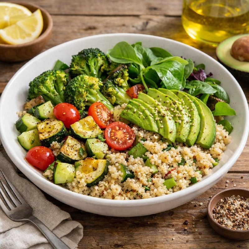 Иногда, чтобы почувствовать больше энергии и лёгкости, не нужны сложные схемы — достаточно начать с простых, но сбалансированных блюд 🤍 Делимся рецептом, который отлично поддерживает уровень энергии и насыщает без тяжести 👇 Почему он полезный: — даёт стабильный уровень энергии — не вызывает резких скачков сахара — содержит белки, полезные жиры и клетчатку 👩🍳Ингредиенты: • киноа — 50–70 г (в сухом виде) • авокадо — ½ • огурец • шпинат или микс зелени • запечённые овощи (например, брокколи или кабачок) • оливковое масло • лимонный сок • соль, специи по вкусу 🍽️Как приготовить: 1. Отварите киноа (примерно 15 минут), остудите до тёплого состояния. 2. Добавьте нарезанные овощи, авокадо и зелень. 3. Заправьте оливковым маслом и лимонным соком. Такой приём пищи хорошо подойдёт на обед или лёгкий ужин. Сохраняйте, чтобы не потерять ✅ А вы чаще выбираете простые блюда или любите экспериментировать? 👇