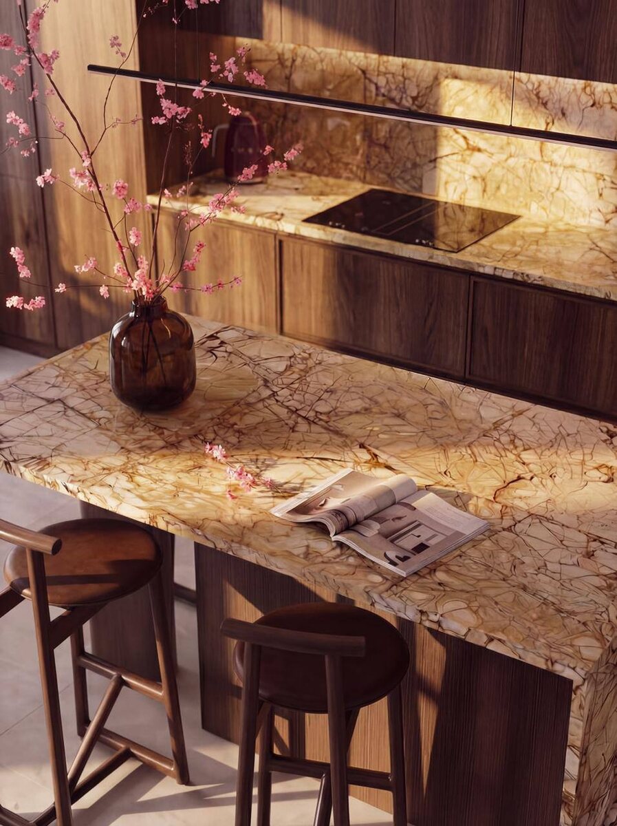 Его графичный рисунок «паутинкой» с теплыми карамельно-медовыми оттенками - настоящее искусство, созданное природой. Фактура сразу задаёт интерьеру характер. Помимо эстетики — это ещё и практичное решение: кварцит отличается высокой прочностью, устойчив к царапинам, влаге и температуре. Идеально подходит для создания долговечных и эффектных кухонных островов, столешниц, фартуков и акцентных панелей. Для дизайнеров это настоящий инструмент создания вау-эффекта — особенно в сочетании с деревом, латунью и мягким светом. И хорошая новость: сейчас кварцит Spiderman доступен по специальной сниженной цене — $250/м². Отличный повод заложить в проект материал с характером. 💬 Telegram 💬 Max 📞 +78126221890 📧 nensy@nensy.ru 🌐 nensy.ru