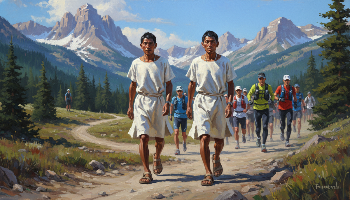 На старте ультрамарафона в Колорадо опытные атлеты переглядывались и усмехались. Среди сотен подготовленных спортсменов стояли двое. Низкорослые, в самодельных сандалиях из куска покрышки и кожаного ремешка. Без гелей, без компрессионных гетр, без пульсометров.