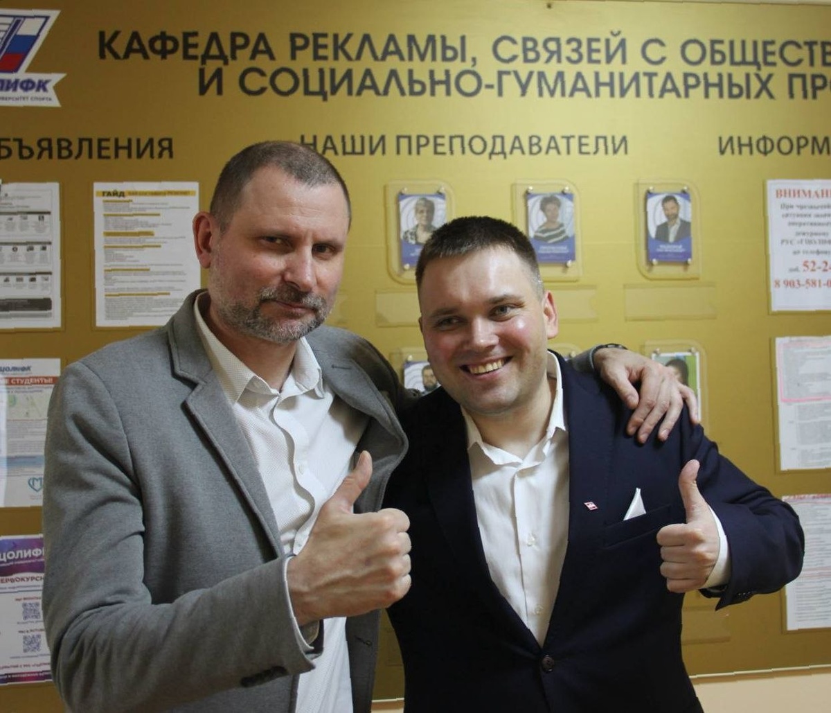 Пригласил на днях в гости в РУС пресс-атташе столичного хоккейного клуба «Спартак» Владимира Животникова. "Сто" лет не виделись. Были знакомы и общались со времен моей деятельности в Ночной хоккейной лиге и с командой "Ядрёный Вождь". Дай бог памяти.... с года 13-14-го. Владимир был комментатором, обозревателем и корром матчей регионального чемпионата в Москве, игр Финала Всероссийского финала НХЛ в Сочи. Приходил поддержать ядрёных "индейцев" и посмотреть, как трудится его молодёжная PR-группа, в которую входили студенты кафедры рекламы и PR. До сих, кстати, Владимир, приводит в пример ту нашу PRодвинутую и опередившую время деятельность в любительском хоккее. Владимир на позитиве, всегда улыбчив, вежлив, всегда говорит хорошие, приятные и честные слова в адрес нашей кафедры. На протяжении этих лет следил за его профессиональным ростом. Приятно видеть, как делают себя сами (конечно, при содействии всех, кто знает их профессиональные качества) хорошие парни и девчонки. Доволен тем, чт