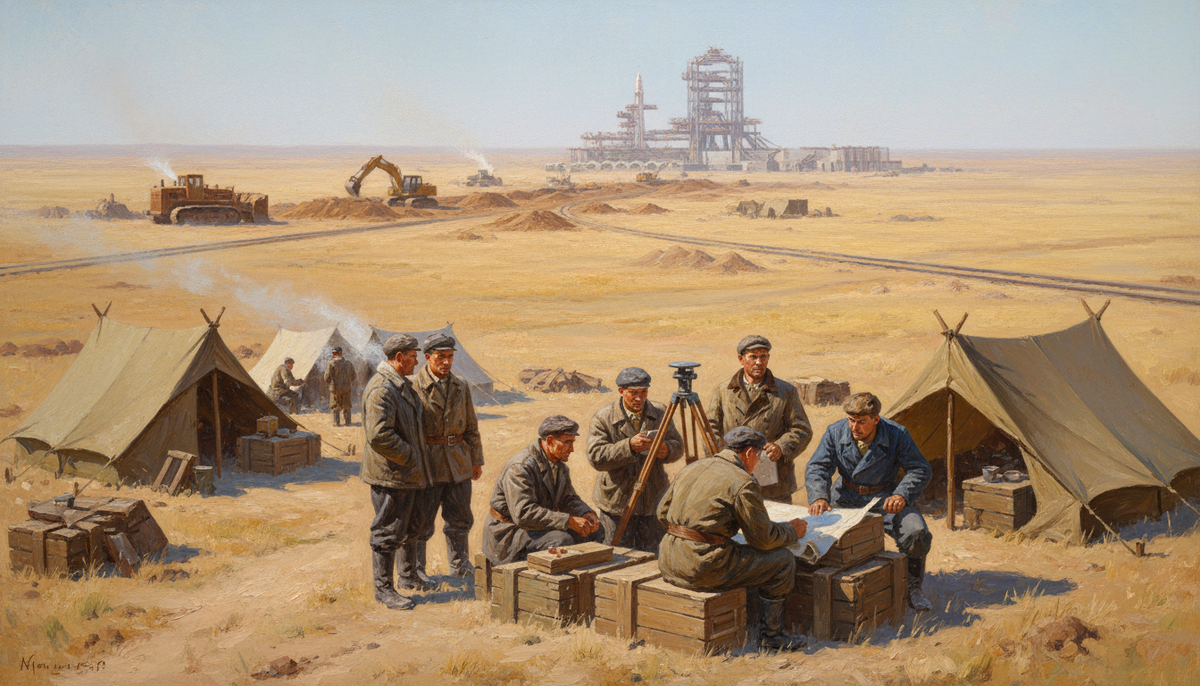 Январь 1955 года. Западный Казахстан. 2600 километров от Москвы, 700 от Ташкента. Выбрали это место не случайно — подальше от чужих глаз, от промышленных районов, от всего, что могло бы выдать масштаб затеи. Первые строители жили в палатках. Потом — в землянках. Питьевую воду завозили. Гвозди — тоже.