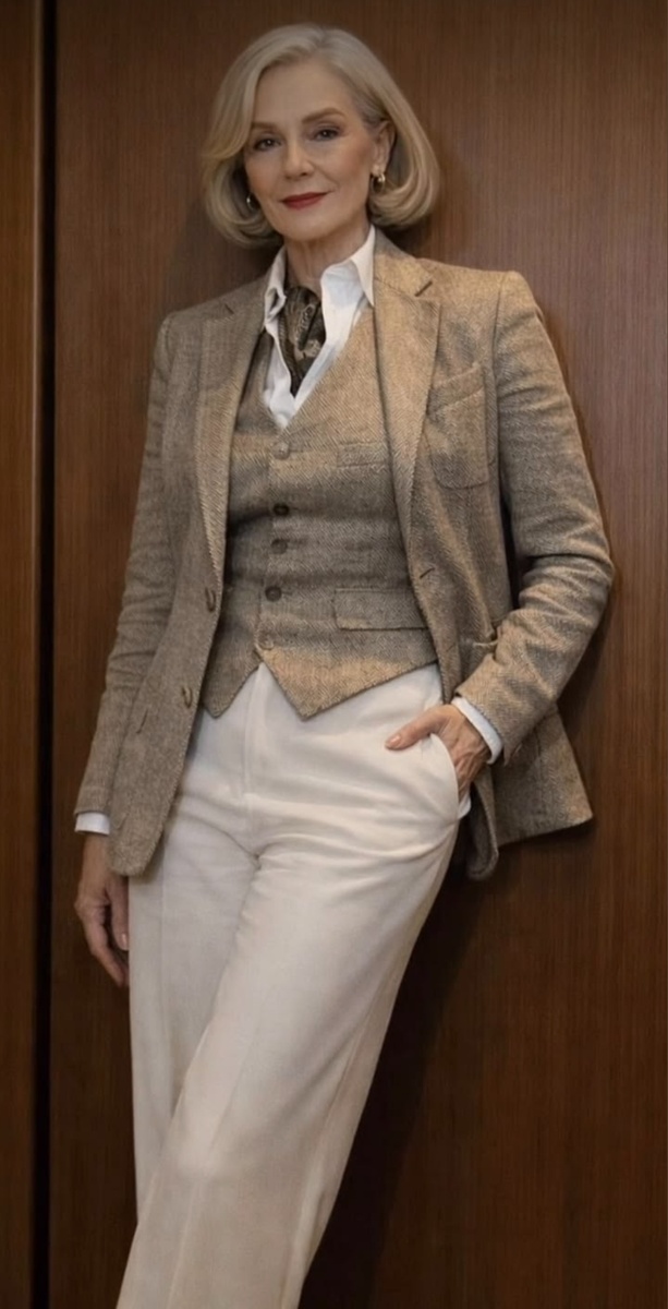 В 50 лет кремовые оттенки работают как мягкий фильтр, делая тон кожи визуально более ровным и отдохнувшим.