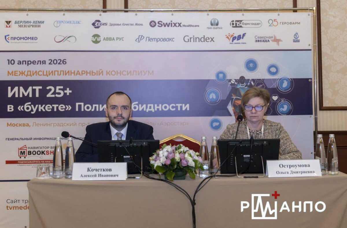 » 10 апреля 2026 года в Москве в гибридном формате прошел Междисциплинарный консилиум «ИМТ 25+ в «букете» Полиморбидности». На нем были рассмотрены актуальные вопросы избыточной массы тела и ожирения как ключевого фактора риска развития множества заболеваний. 🔵Сотрудники и соискатели кафедры терапии и полиморбидной патологии имени академика М.С. Вовси представили более 10 докладов. Среди выступающих — д.м.н., профессор Остроумова О.Д., к.м.н., доцент Кочетков А.И., к.м.н., доцент Кроткова И.Ф., соискатели кафедры Бонадыкова В.А. и Сахнова Е.Е. 🔵Научным руководителем консилиума выступила Остроумова Ольга Дмитриевна – д.м.н., профессор, заведующий кафедрой терапии и полиморбидной патологии имени академика М.С. Вовси РМАНПО. ➡️ Подробнее читайте на сайте 💬 Медицина на МАХимум — быстро, удобно, безопасно