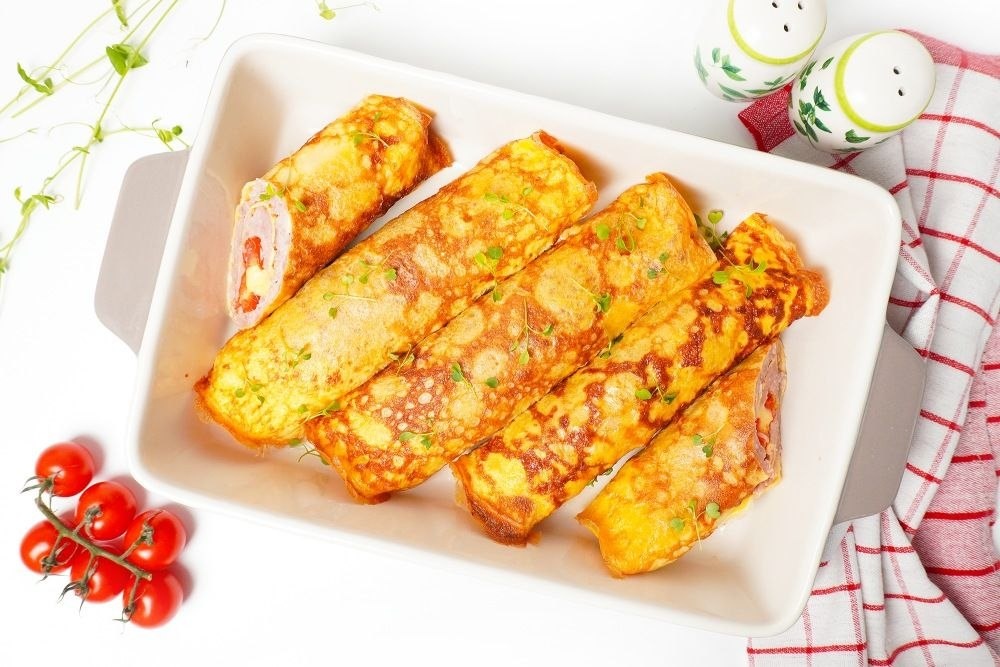 🍳 Нежные омлетные блинчики с мясным фаршем, помидорами черри и сыром, запечённые в духовке. Простой и эффектный способ приготовления без риска порвать блин — подходит даже новичкам. 📖 Ингредиенты (на 6–7 бризолей): · Фарш мясной (свино-говяжий, куриный или индюшачий) — 1 кг · Лук репчатый — 150 г (≈ 1–2 шт.) · Яйца (СО) — 8 шт. · Молоко — 150 мл · Помидоры черри (или коктейльные) — 300 г · Сыр твёрдый (голландский, чеддер, моцарелла) — 200 г · Соль — 1 ч.л. · Перец чёрный — ½ ч.л. · Масло растительное — для смазывания сковороды 🧑🏻🍳 Приготовление: 1. Разогрейте духовку до 180–190°С. 2. Лук мелко нарежьте, добавьте к фаршу, посолите, поперчите, перемешайте. 3. Помидоры черри нарежьте мелкими кусочками (каждый на 6–8 частей). Сыр натрите на крупной тёрке. 4. Яйца взбейте с молоком до однородности. 5. Разогрейте сковороду (диаметром 23–25 см), смажьте каплей масла. Вылейте почти полный половник омлетной смеси, жарьте на огне чуть выше среднего 3–4 минуты, пока верх не схватится.