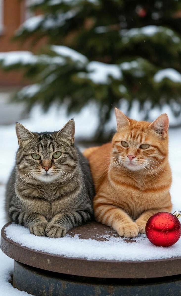 С улицы из-за забора в проем быстро просеменила коротконогая бурая собачка с солидным куском свиных ребрышек и положила их прямо перед довольными кошачьими мордами. Оба кота не то, что дворняг, породистых собак не очень-то боялись и могли за себя сильно постоять, но тут было совсем другое дело. Собачку звали Тетка и она заботливо дружила с ними. Новый год все-таки. Троица начала неторопливо пировать, культурно, без рычания и шипения.