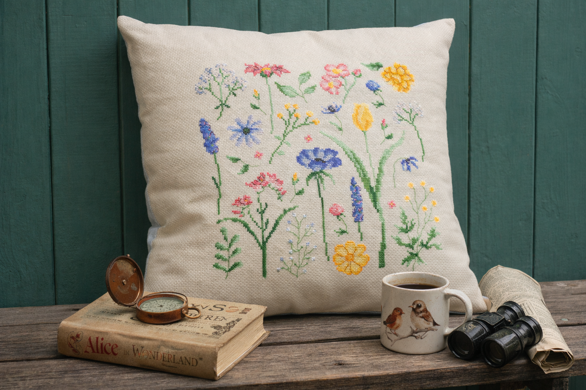 Предлагаю вам вышить эту невероятно нежную подушку. Она наполнит комнату летним теплом и уютом.