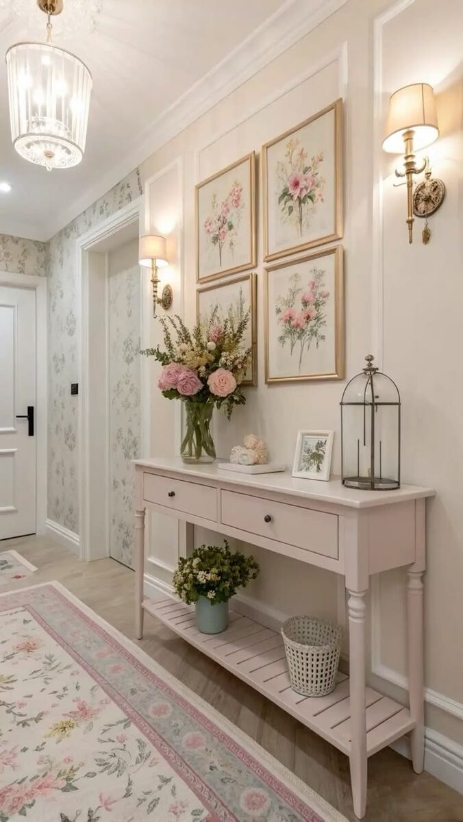 ✨Если прихожая узкая и длинная, визуально разделите её на зоны с помощью ковров, светильников или растений. Это смягчит «энергетический сквозняк».
