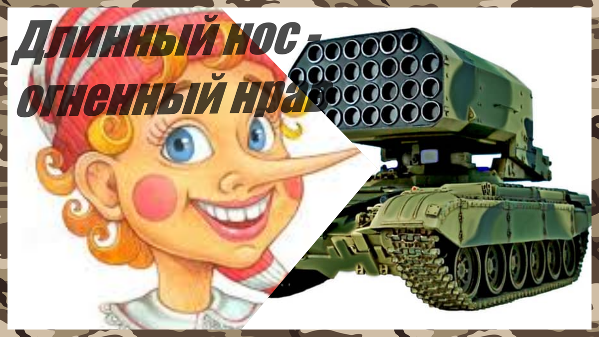 Знатоки техники указывают на форму самого неуправляемого термобарического снаряда МО.1.01.04. В отличие от тупоносых или закруглённых ракет РСЗО, этот термобарический боеприпас имел выраженный, очень острый и длинный конический обтекатель, очень напоминающий длинный заострённый нос главного героя сказки. Когда такую ракету подвозит транспортно-заряжающая машина и начинается процесс заряжания, «длинный нос» — это первое, что бросается в глаза.