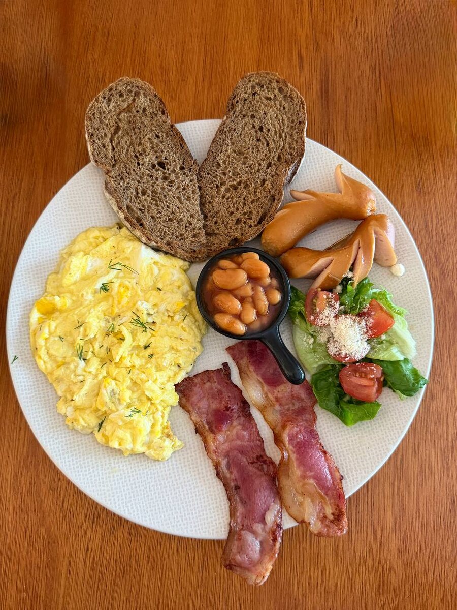 berry. Внутри приятная атмосфера. Меню разнообразное, есть даже борщ и вариант «комбо». Есть подозрение, что открыли русские😁Чтобы перевести в ₽, цены умножайте на 5. Муж заказал себе блинчик с несладкой начинкой, его нет на фото. Я себе заказала сырники. А блюдо с яйцом, салатом, сосисками мы скушали пополам😀 Поняли что не наелись и за оставление отзыва нам дали еще сладкий блинчик, его тоже скушали пополам. В течение дня у нас два приема пищи: завтрак и ужин, поэтому они калорийные. В течение дня мы плаваем в бассейне или океане. P.S. кафе это на Бали. Не успела поделиться, что у меня сменилось местонахождение,т.к мы с мужем утроили себе отпуск.