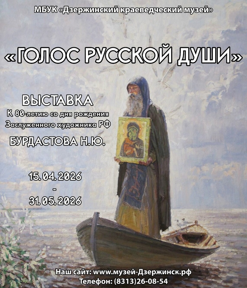 Выставка посвящена 80-летию со дня рождения Заслуженного художника Российской Федерации Николая Юрьевича Бурдастова. Детство художника прошло в адыгейском Майкопе. В 1961 году с матерью, отчимом и младшей сестрой он переехал в Дзержинск, где его сразу же приняли в старший класс художественной школы. Учителями Н.Ю. Бурдастова были известные дзержинские живописцы: Н.Ф. Кузнецов, В.И.Ганьшин, Б.И. Синалеев. После окончания школы Николай Юрьевич начинает свой трудовой путь в качестве художника-оформителя на заводе «Химмаш».. С 1982 года он – член Союза художников России. В 1992 году Николай Юрьевич создал общество дзержинских художников «Реалист». Николай Юрьевич всегда был очень требовательным к качеству своих работ. Каждый день он приходил в мастерскую, чтобы писать, отгородившись, как отшельник, от мирского, суетного, замкнувшись на внутреннем. Работал в жанрах пейзажа, интерьера, натюрморта, портрета. В 2007 году Николаю Юрьевичу было присвоено почётное звание «Заслуженный художник Рос