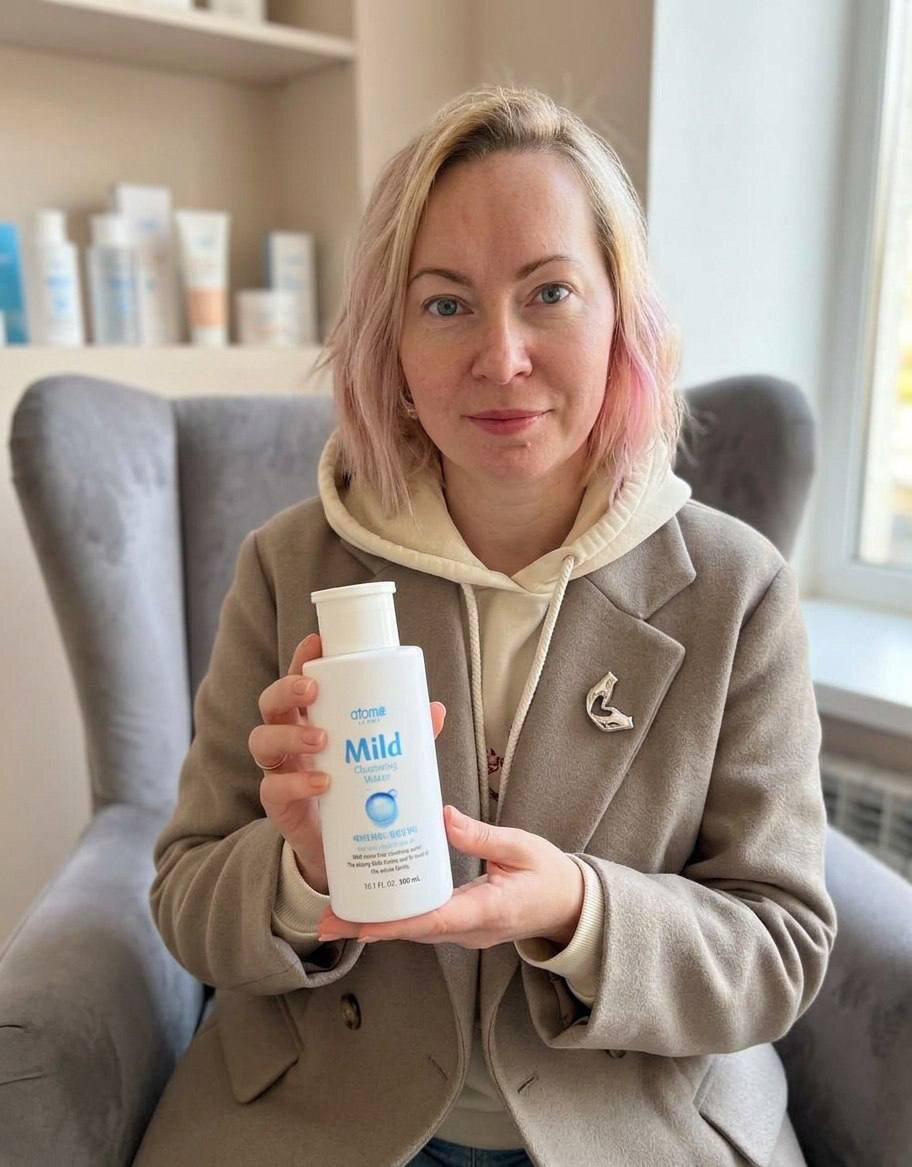 Знакомьтесь — Mild Cleansing Water от Atom美 (ATOMY). На первый взгляд — обычная мицеллярная вода. Но давайте посмотрим на детали, которые её выделяют: 🌿 84% ингредиентов натурального происхождения Это значит, что продукт работает бережно. Он не сушит кожу, не стягивает и не вызывает раздражения. Идеален даже для чувствительной кожи. 🧴 Подходит для всей семьи. Одним флаконом могут пользоваться и взрослые с сухой/нормальной кожей, и подростки, и даже дети — настолько мягкая формула. 💦 Объём 300 мл Экономичный флакон, который не закончится через две недели. Хватает надолго — даже при ежедневном использовании. ✨ Зачем она нужна? · Снять макияж (в том числе с глаз) · Очистить лицо утром вместо умывания · Освежить кожу в течение дня · Деликатно удалить загрязнения, когда нет доступа к воде Кому точно подойдёт: ✅ Тем, кто ищет «безотказную» мицеллярку без спирта и отдушек ✅ Тем, кто не любит липкую плёнку после умывания ✅ Тем, кто ценит корейскую косметику с прозрачным составом 🧡