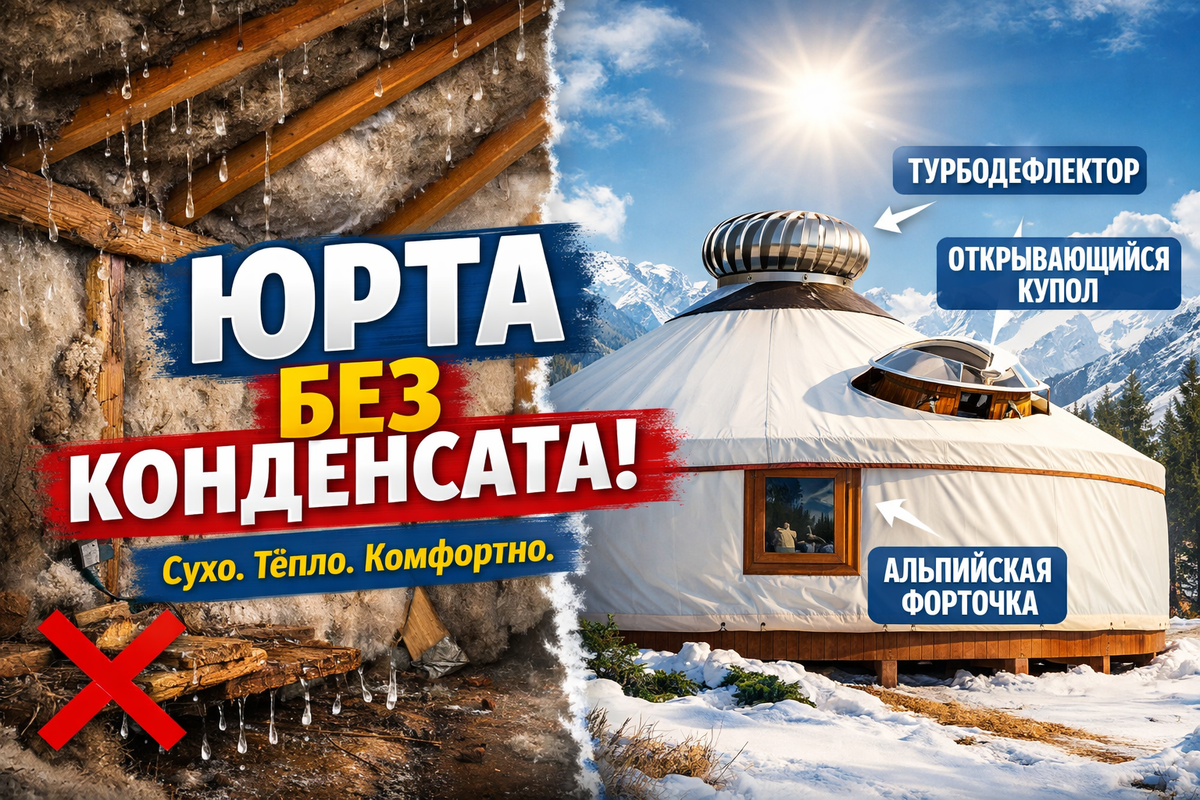 Современные юрты — это не просто пережиток кочевой культуры, а полноценное альтернативное жильё, сочетающее уют, экологичность и близость к природе. Однако у такого дома есть один серьёзный «подводный камень» — конденсат. Особенно остро эта проблема проявляется в холодное время года, когда внутри топится печь, а снаружи мороз.