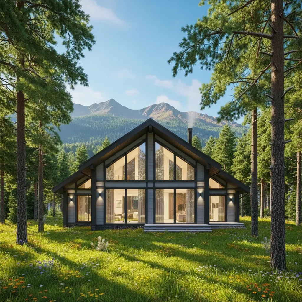 Эти дома выглядят невероятно стильно и современно, гармонично вписываясь в любой ландшафт, будь то густой лес или живописное поле. Они создают ощущение легкости и воздушности, словно дом является продолжением природы.