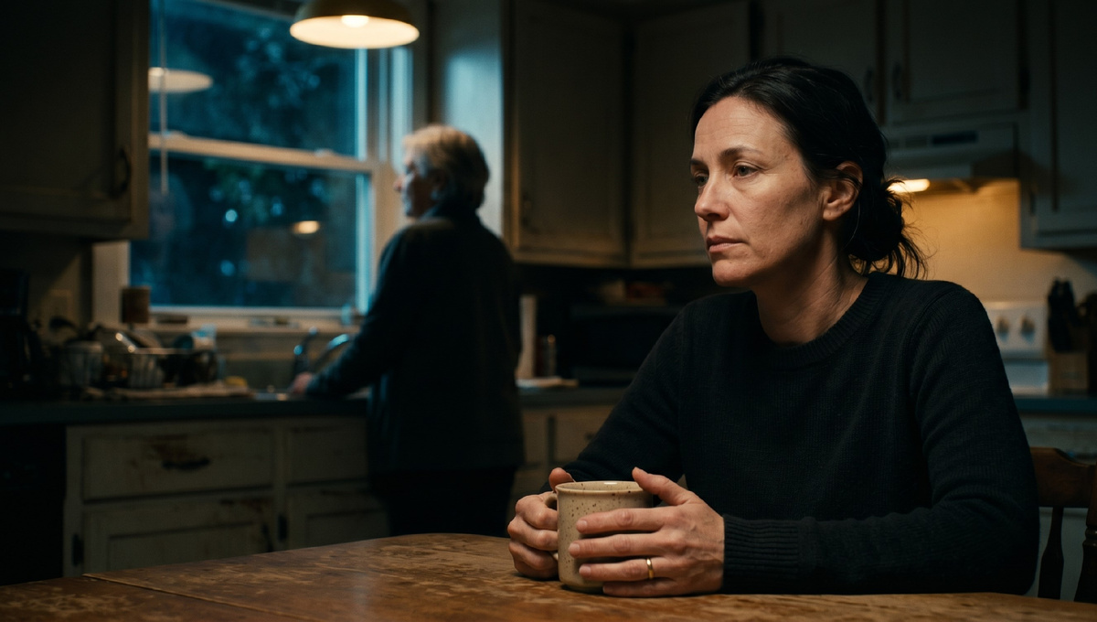 Перехватило дыхание — секунды на три. Муж стоял в дверях кухни и говорил ровно, без интонации: «Мама сказала, что видела тебя в кафе с Денисом». Денис — бывший коллега. Пересекались случайно, раз в полгода. Я ничего не скрывала. Но в том, как муж это произнёс — было что-то заранее решённое. --- Задним числом вижу: первые намёки появились через год после свадьбы. Свекровь не говорила ничего прямого — только вскользь. «Ты же понимаешь, как мужчины реагируют, когда жена часто задерживается». Или: «Денис хороший человек, жаль что вы так и не потеряли связь». Это звучало как забота. Я кивала. Муж отдалялся — я объясняла это усталостью, ритмом, бытом. Не замечала, что он смотрит на меня иначе: с тем тихим подозрением, которое не называется вслух, но живёт в паузах. Три года я жила с ощущением, что что-то не так — и что это «что-то» во мне. Мы были у свекрови — я, муж, брат Виталий с женой. Свекровь обронила фразу про свёкра: «Папа всегда умел прятать. Я научилась». Виталий засмеялся — с