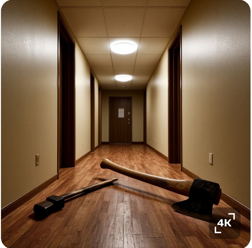 Мы открыли дверь и увидели на лестничной площадке нашего милого соседа с топором. Он нам бесхитростно обозначил свои намерения расправиться с соседкой напротив.