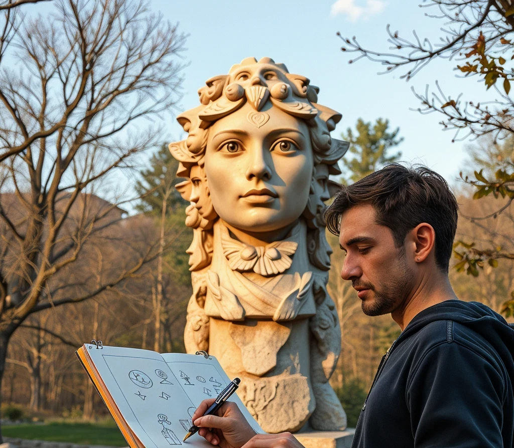 Разбили лагерь в 50 метрах от колонны. Кирилл достал блокнот и начал зарисовывать символы. Линия за линией, он переносил знаки на бумагу, стараясь уловить их геометрию. Но когда закончил, с удивлением обнаружил, что нарисовал не те знаки, что видел на камне, а какие‑то другие — более сложные, с спиралями и точками, расположенными в строгом порядке.