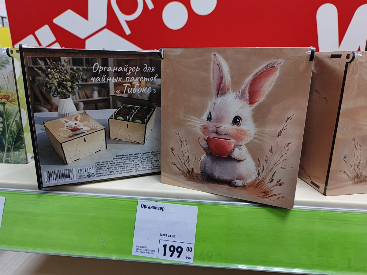 Фанерный органайзер с приятным цветным принтом для чайных пакетиков, в милом весеннем дизайне, прекрасно дополнит любой интерьер. Цена 199 рублей.