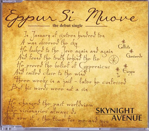 «Eppur Si Muove» («И всё-таки она вертится») — это не просто песня, а настоящий гимн торжеству науки над предрассудками. Проект Skynight Avenue был создан участниками группы Systems In Blue — Михаэлем Шольцем, Детлефом Видеке и Томасом Видратом — как возвращение к звучанию диско 80-х. Дебютный сингл, вышедший 2 августа 2013 года, повествует о Галилео Галилее, который «смотрел на Юпитер снова и снова и нашёл правду во лжи». Лимитированная серия из 222 копий разлетелась за 10 дней, что доказывает — спрос на качественное евро-диско не угас.