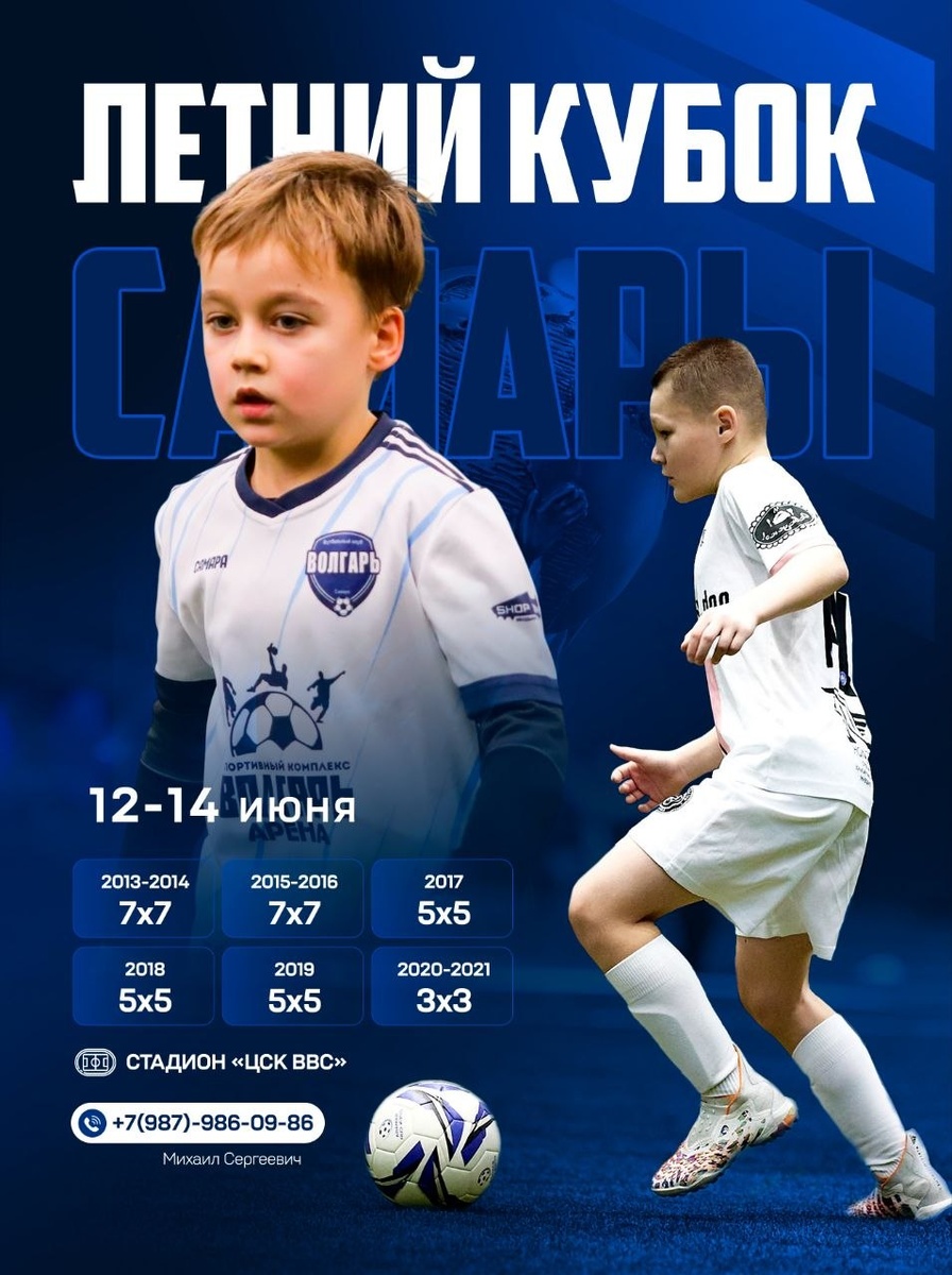 ! ⚽ Юные футболисты, готовьте бутсы: в Самаре пройдёт яркий футбольный фестиваль для самых азартных и талантливых команд! 📆 12–14 июня. 🏟️ стадион ЦСК ВВС (г. Самара) Мы ждём команды разных возрастов — у нас продуманные форматы для каждой группы: • 2013–2014 г. р. — формат 7×7; • 2015–2016 г. р. — формат 7×7; • 2017 г. р. — формат 5×5; • 2018 г. р. — формат 5×5; • 2019 г. р. — формат 5×5; • 2020–2021 г. р. — формат 3×3. Это отличная возможность для ребят показать свои навыки, получить игровой опыт, завести новых друзей и зарядиться атмосферой большого спортивного праздника! 📋 Не упустите шанс стать частью события — регистрируйте команду прямо сейчас! 📞 Регистрация команд: +7 987 986‑09‑86. Делитесь постом с тренерами и родителями — пусть как можно больше команд узнают о фестивале! Ждём вас на поле! 💪✨ #ЛетнийКубокСамара #ДетскийФутбол #ФутболВСамаре #ФестивальФутбола #ЮныеФутболисты