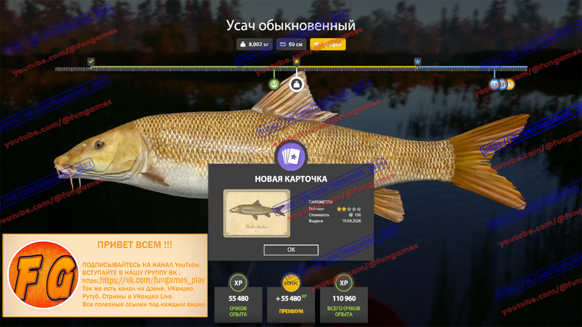 Рыбачил 2 часа 20 мин. Поймал более 50-ти усачей. Идет и Усач альбинос. Помимо трофа и фарм получился отменным) Всем хорошей рыбалки!!!