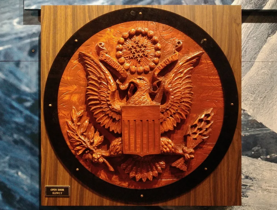 В августе 1945 года, сразу после окончания Второй мировой войны, отношения между союзниками еще сохраняли внешнюю дружелюбность. Именно тогда пионеры лагеря «Артек» торжественно вручили послу США в Советском Союзе Авереллу Гарриману красивое деревянное изображение Большой печати Соединенных Штатов.