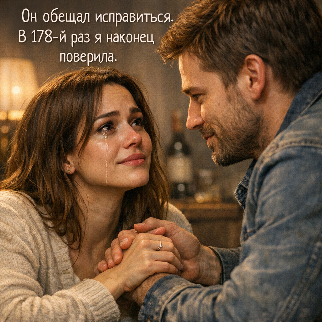 Пятидесятое обещание — через два года. Он толкнул меня. Не сильно, я не упала. Но толкнул. Потом плакал, стоя на коленях. «Я больше никогда. Клянусь. Я исправлюсь».