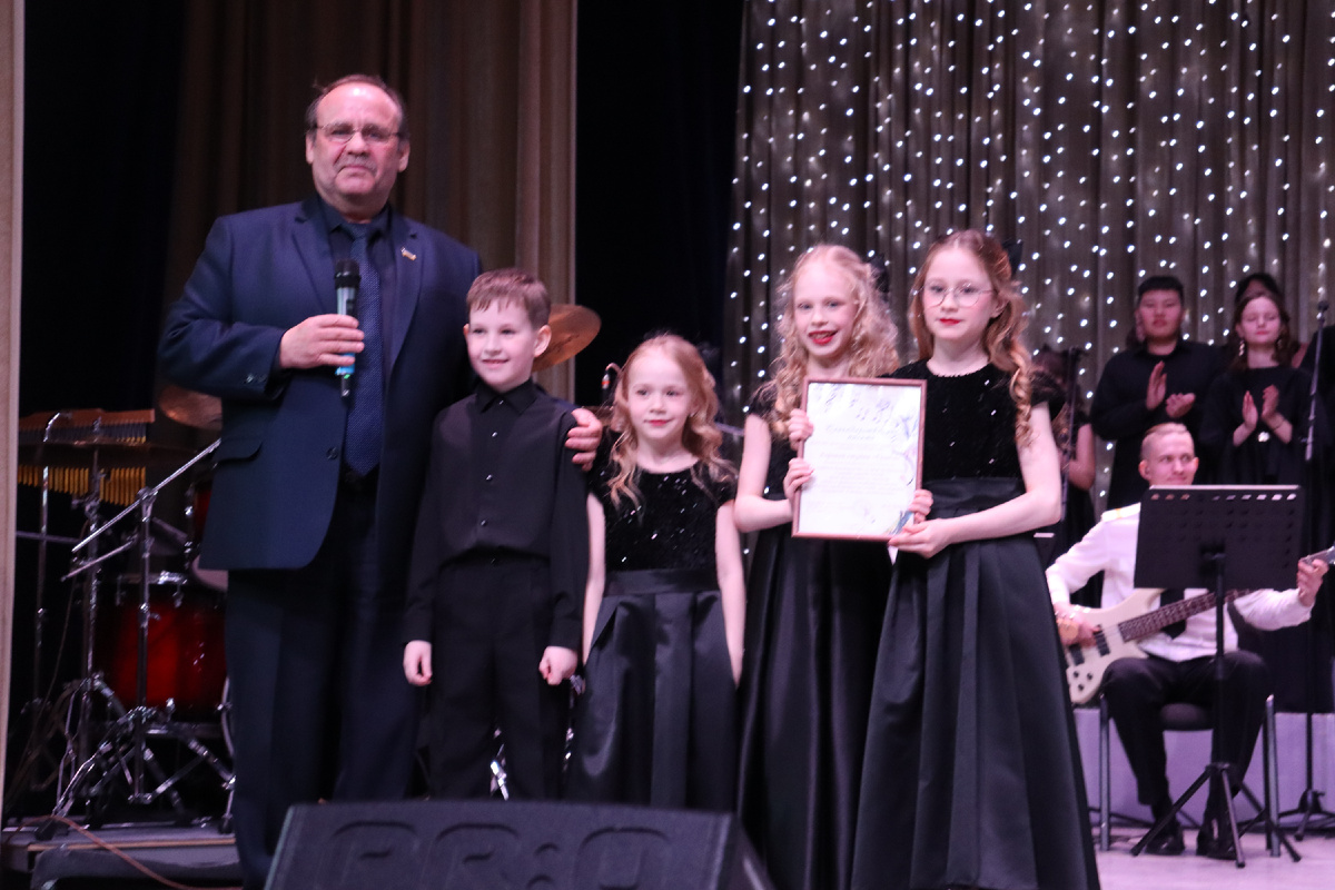 Да, песня может вдохновить на подвиг, на Победу, утешить в горе и разделить с нами радость На днях во Дворце культуры «Железнодорожник» северобайкальцев порадовали своим искромётным искусством три коллектива, художественным руководителем которых является несравненная, очаровательная и талантливая Виктория Дмитриева: хор старших классов ДШИ «Виват», вокальная студия «Проспект» и младшая хоровая студия – юные «Голоса». И в этом замечательном действе, насыщенном эмоциями и экспрессией, также активно участвовали концертмейстер Виктория Рузметова, оркестр войсковой части 7628 под управлением дирижёра Леонида Голованова и танцевальная студия «Баяр» во главе с Дулмой Базаржаповой. Разумеется, вначале, как и положено, грянули Гимн города Северобайкальска – как известно, автором его слов и музыки является наш выдающийся земляк, Почётный гражданин города, заслуженный работник культуры РБ и РФ Сергей Давыдов. Впервые он был исполнен заслуженным артистом России, солистом Большого театра Романом М