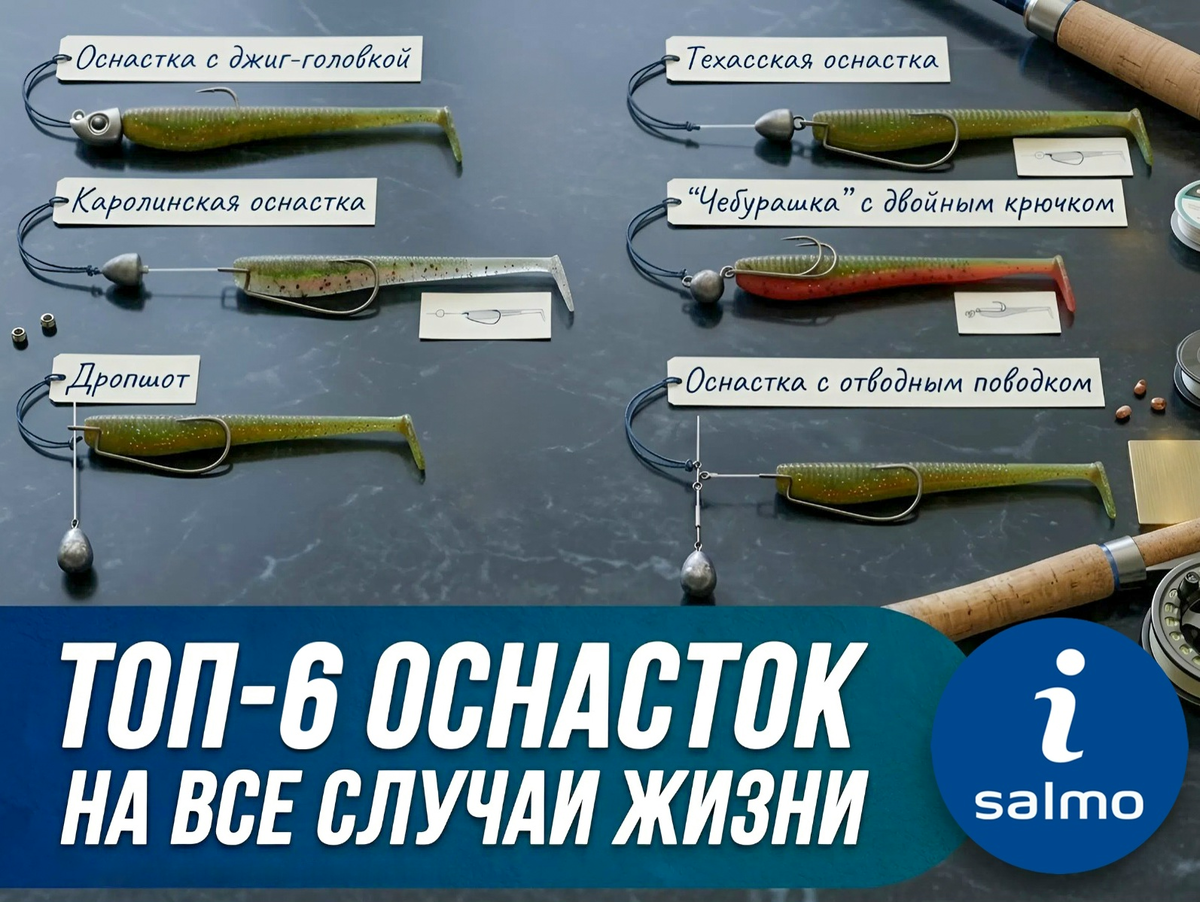 Джиг-ликбез: 6 оснасток, которые должен знать каждый уважающий себя спиннингист. Одна и та же силиконовая приманка может играть совершенно по-разному, всё зависит от оснастки. Вашему вниманию: 6 рабочих джиговых вариантов монтажа, которые стоит держать в арсенале: Лучший вариант для поиска рыбы на глубине и течении. Жёсткое соединение груза и крючка даёт отличную чувствительность, хорошо читается рельеф и касание дна. Отлично работает на мелководье и мягком дне. Груз идёт впереди, а приманка - на поводке позади. Она движется свободно и выглядит максимально естественно. Оснастка для точечной ловли. Приманка закреплена выше груза и может долго играть на одном месте. Идеальный вариант для судака или окуня, когда рыба стоит локально. Настоящий спасатель в корягах и траве. Крючок прячется в теле силикона, превращая приманку в незацепляйку. Шарнирный монтаж, который даёт приманке более свободную и живую игру. Отлично подходит для ловли активного хищника: щуки, судака, крупного окуня. Настоящ